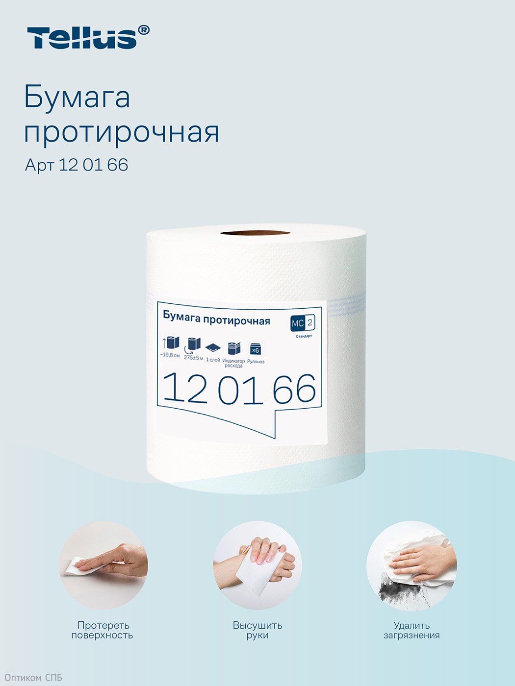 Tellus - Новое имя бренда Торк Бумажные полотенца Торк-Tellus Стандарт однослойные, выполнены из вторичного сырья. Универсальный материал для легкой уборки и высушивания рук. Рекомендован для зон с высоким уровнем потребления. Сохраняет прочность во влажном состоянии. Для использования с диспенсерами с центральной вытяжкой системы М2. Рулон длиной 275 м ширина 19,8 см.