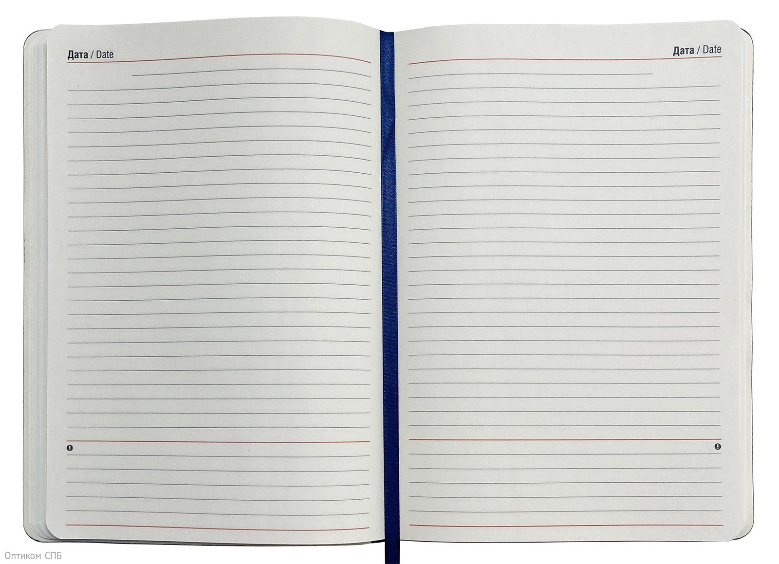 Ежедневник Qredo Flex имеет интегральную гибкую обложку из искусственной кожи темно-синего цвета. Внутренний блок выполнен из тонированной бумаги кремового цвета плотностью 70 г/м2. Имеет двухцветную линовку. Справочно-информационный раздел включает в себя страницы с блоком личных данных, сбалансированными целями и планами на год, важными датами, единицами измерения, размерами одежды, обуви, форматы бумаг, телефонные коды городов России, нормы калорий. Оснащен резинкой для предотвращения мех...