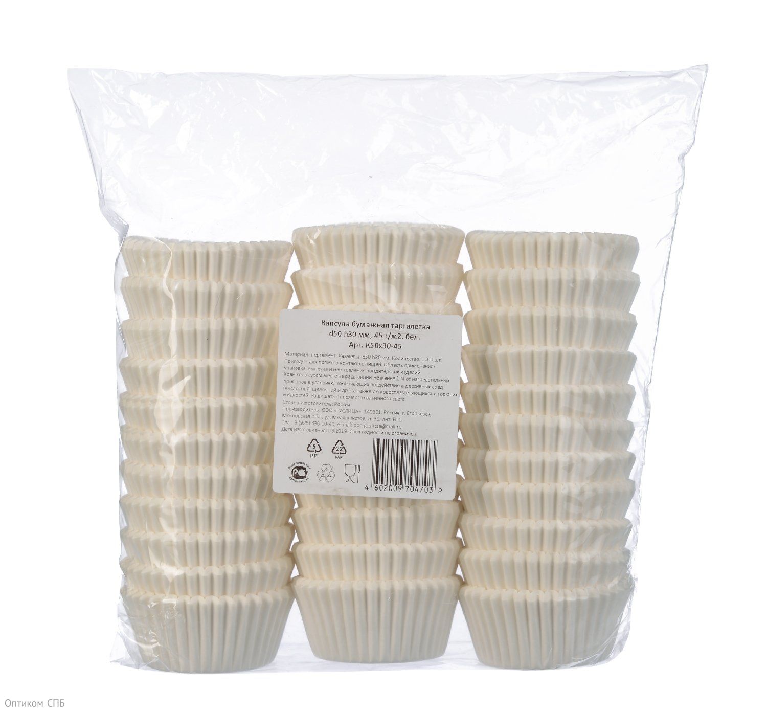 Бумажная форма для пирожных, диаметр 50 мм, высота 30 мм, круглая, белая, 1000 штук