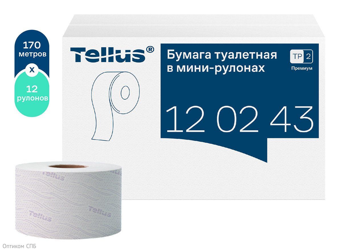 Туалетная бумага Tellus Торк Премиум, Т2, 2-слойная, белая, 170 метров, 12 рулонов в упаковке